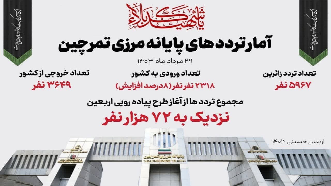 شایان ذکر است که در سال گذشته، برای اولین بار امکان تردد زوار اربعین از مرز تمرچین فراهم شد و حدود ۷۰ هزار زائر از این مرز تردد کردند.