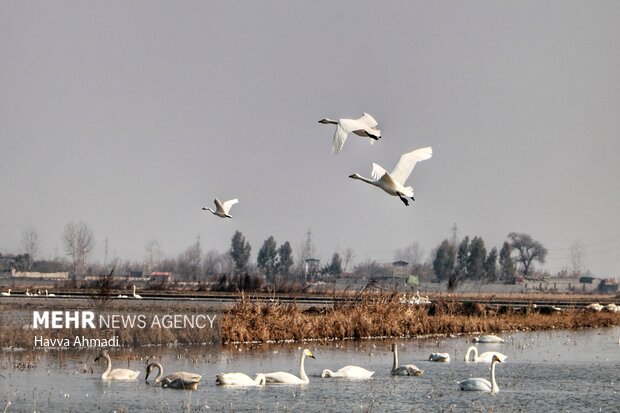نخستین دسته از قوهای مهاجر وارد تالاب سولدوز شهرستان نقده شدند